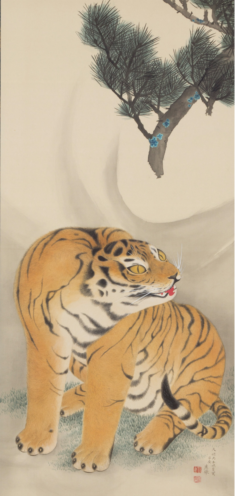 絹本、油煙墨、胡粉、水干、岩絵具